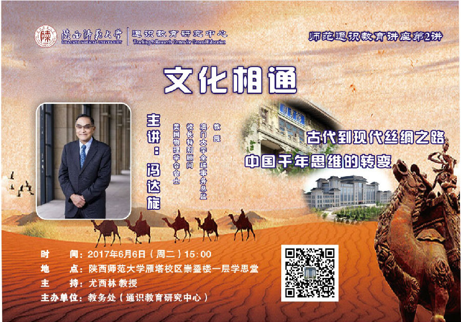 讲座题目:师范通识教育讲座第二讲:文化相通: 古代到现代丝绸之路,中国千年思维的转变