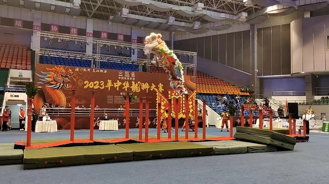 师大新闻网讯 4月21日-23日,由国际龙狮运动联合会、重庆市体育局指导,中国龙狮运动协会、重庆铜梁区人民政府主办的2023中华龙狮大赛在铜梁区金龙体育馆举行。本届赛事共设置舞龙、南狮、北狮3个大项共12个小项,吸引了全国各地的20支参赛队共计350余名领队、教练、运动员参赛,3天共进行60场精彩对决。