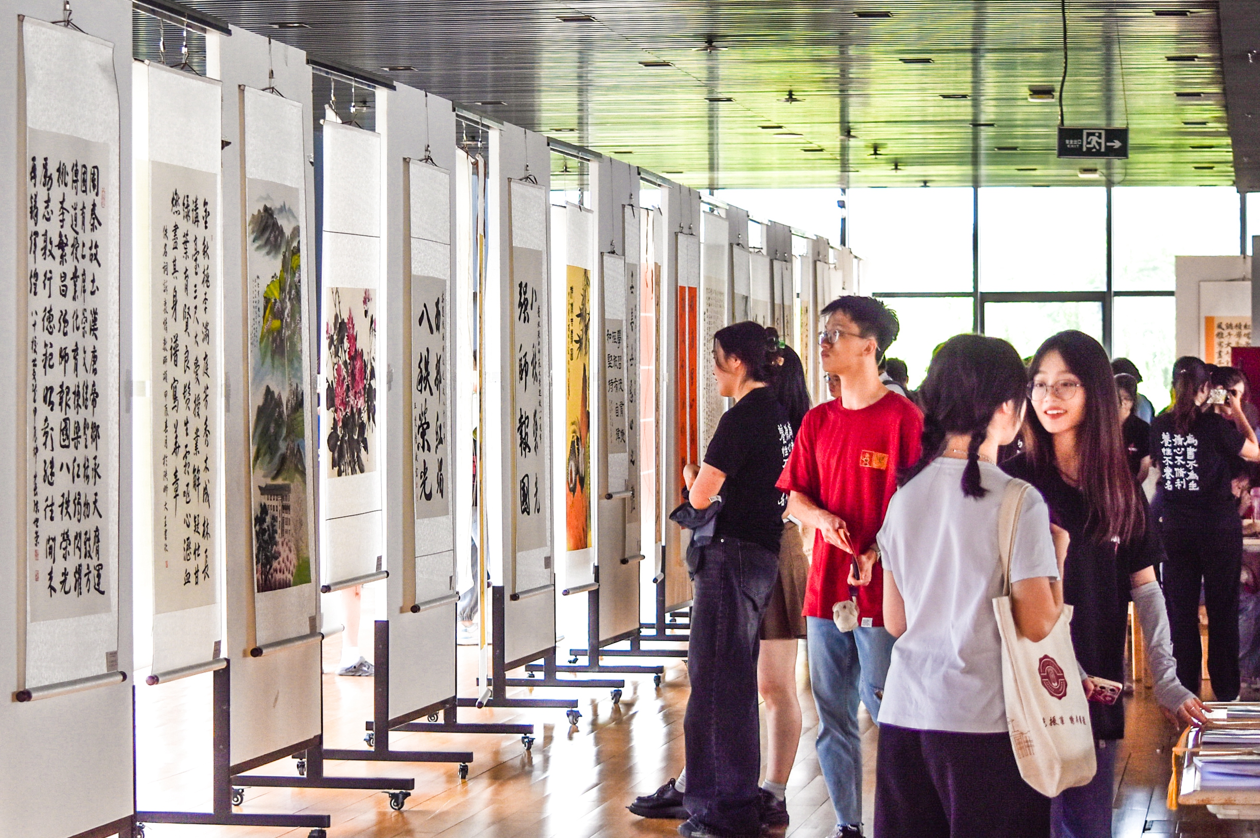 师大新闻网讯 6月12日,由金年会官网国家语言文字推广基地、文学院、教务处、教师教育处、离退休职工工作处(离退休党委)、教师书法教学与研究中心联合主办,文学院砚友书画社承办的第九届“砚友杯”书画篆刻大赛颁奖仪式暨“八秩荣光 强师报国”主题师生书画展开幕式在金年会官网教育博物馆举行。各主办单位相关负责人、书画家及获奖学生代表参加开幕式。