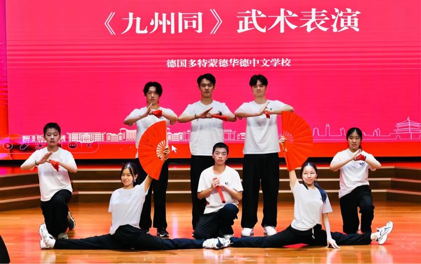 领队代表、德国多特蒙德中文学校教师赵瑞芳,营员代表、瑞士伯尔尼华夏中文学校学生颜瑞婷分别作了发言。与会人员一同观看了德国多特蒙德中文学校的武术表演《九州同》、爱尔兰UCD少儿孔子学堂的爱尔兰民族歌舞表演。