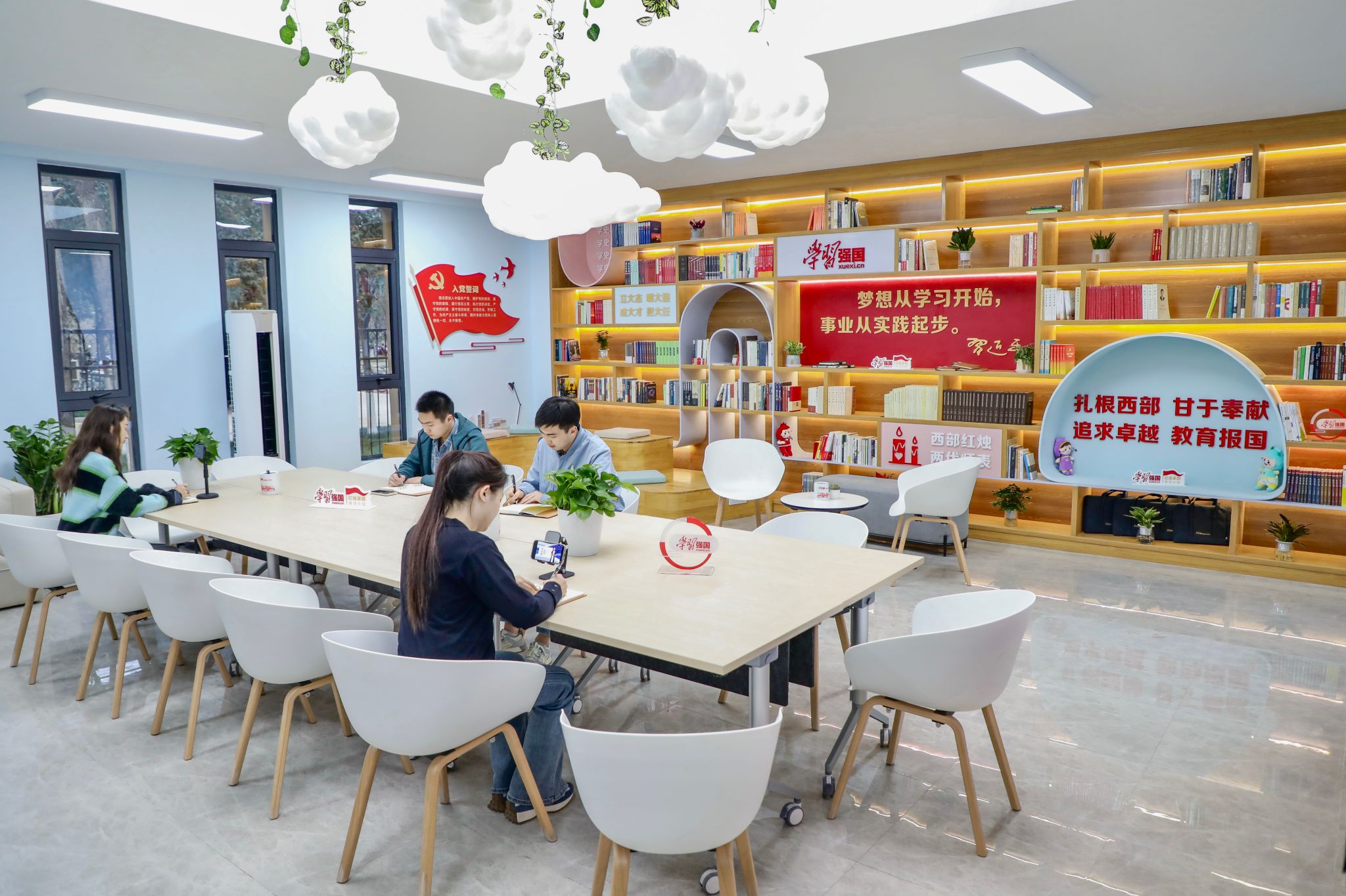 金年会官网“学习强国”线下空间“红烛”家园“一站式”学生社区育人项目是在中共陕西省委宣传部指导下建设的全省高校首家“学习强国”线下空间,平台以“铸魂育人·启智润心”为理念,先后开展主题班会、党团活动、读书分享、学术沙龙、红烛观影、文化交流等育人活动300余场,成为集思想引领、文化浸润、学习交流、身心发展、生活服务等功能于一体的综合育人项目。