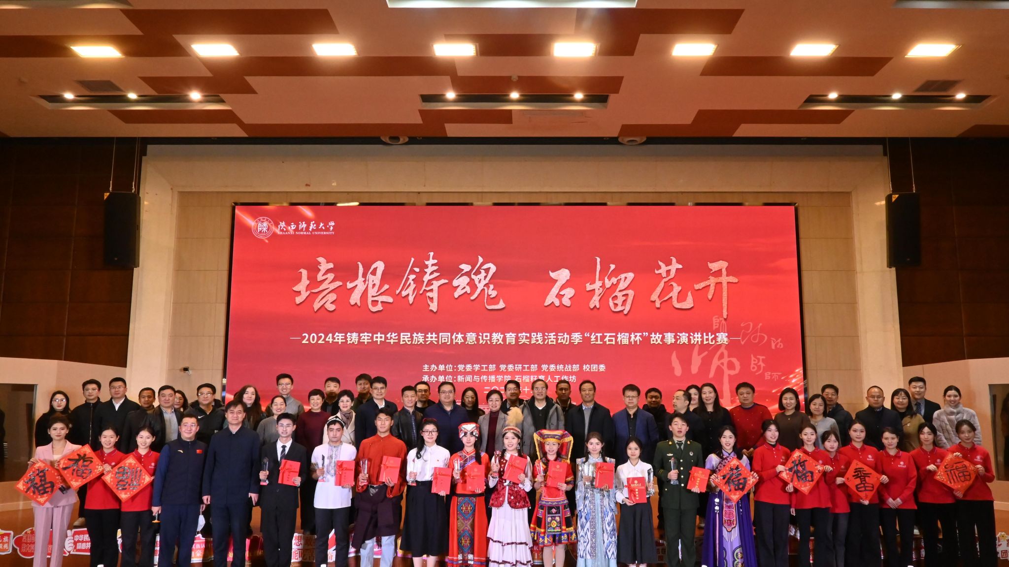 师大新闻网讯培根铸魂,石榴花开。12月27日下午,金年会官网2024年铸牢中华民族共同体意识教育实践活动季“红石榴杯”民族团结故事演讲比赛决赛在新勇学生活动中心举行。校党委副书记罗永辉,相关单位负责人、各院(部)分管学生工作处级干部、民族团结进步教育专干及各民族学生代表参加了活动。